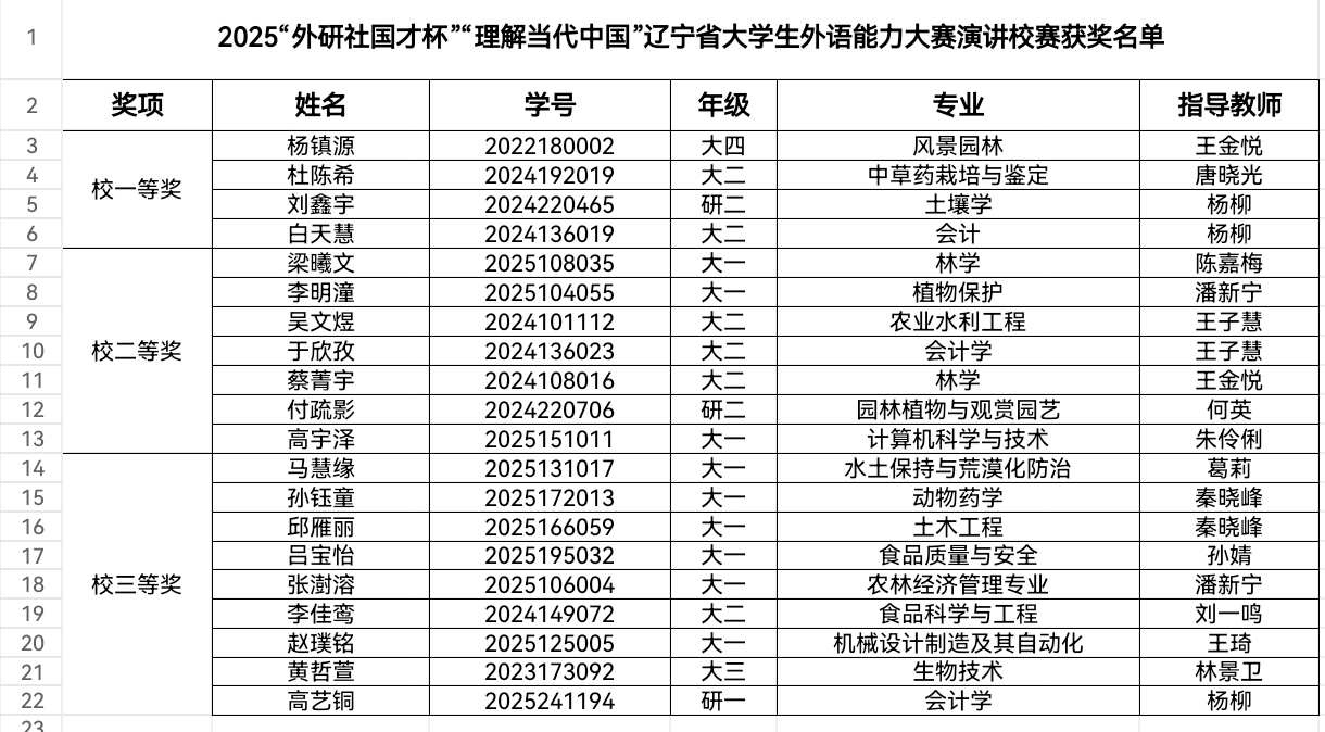 经评委打分,我校2022级林学院杨镇源同学将在王金悦老师的指导下代表我校参加省赛。