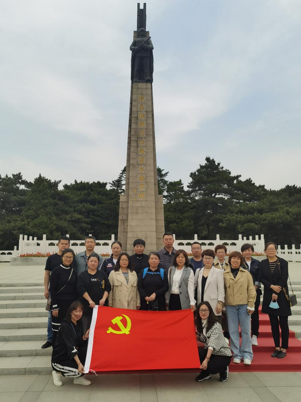 全体党员为英雄纪念碑敬献了鲜花,瞻仰杨根思、黄继光、邱少云、孙占元、杨连弟等特级烈士墓、烈士墓墙,吊唁在抗美援朝战争中英勇牺牲的志愿军烈士。参观抗美援朝纪念馆,馆内展出珍贵图片582幅,革命文物1133件,每一件背后都有动人的故事,再现了志愿军将士和中国人民保家卫国的光辉业绩。