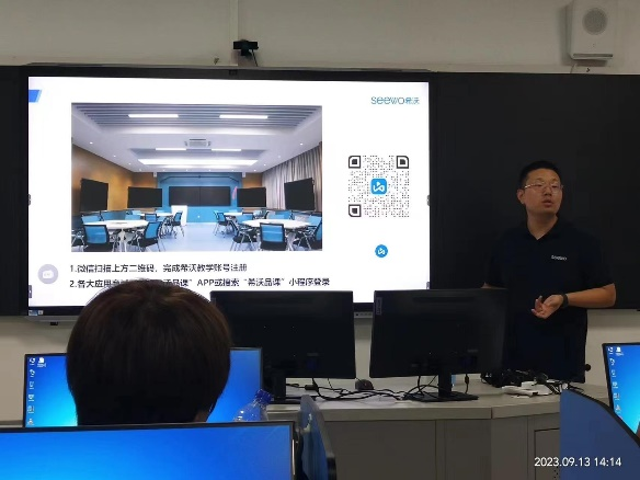 培训会上,蓝鸽智慧系统的技术人员详细讲解了蓝鸽云智慧系统的各项功能,并向教师们讲解了如何利用各项功能及时掌握学生的学习情况,通过反馈调整教学实践。希沃智慧黑板技术人员讲解并演示了智慧黑板的各项功能及操作细节,并介绍了智慧黑板可以为外语教学提供的具体支撑。培训会现场气氛热烈,互动频繁,教师们表示通过学习对新平台有了更深的了解,掌握的新教学技术一定会有助于教学的开展。